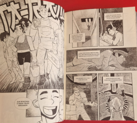 Vamos falar sobre a estética. Diferente dos outros quadrinhos que resenhei, esse é diferente. Começando pelo fato dele ser longo, ele tem 72 páginas e possui uma história um pouco mais adulta. No livro indica que o livro é para maiores de 14 anos. As ilustrações são no estilo mangá, com muita dinamicidade principalmente quando são retratadas as cenas de luta (sim, mais um spoiler da leitura).