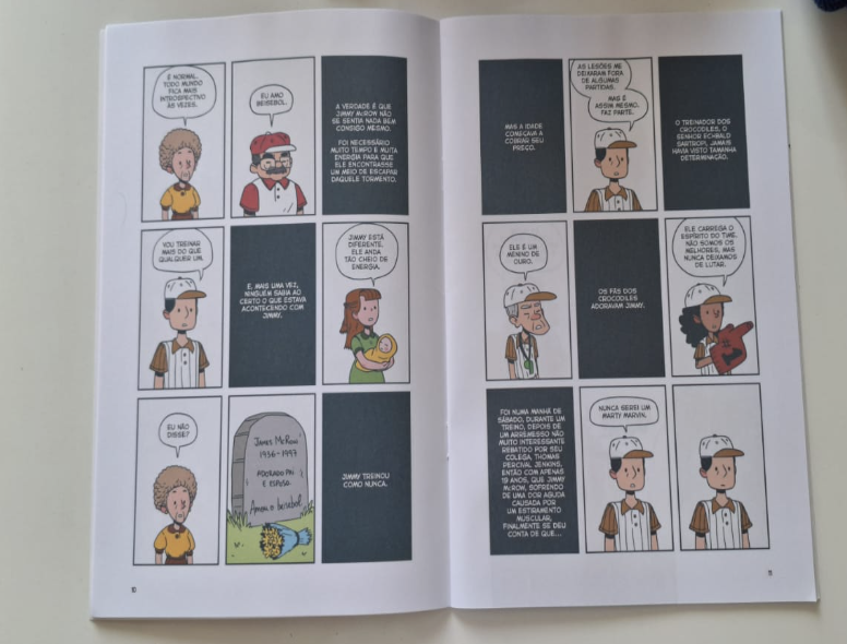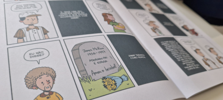 É uma leitura rápida, mas que podemos destacar alguns pontos, como a obsessão dele de ser o melhor. Ele realmente se tornou jogador de beisebol, e saía em jornais, mas sempre tinha algo mais para correr atrás, aquela necessidade de preencher as expectativas que ele mesmo criou.  Um dos quadros fala “Jimmy McRow  já não tinha mais muita vontade de coisa alguma”, e 5 quadros para frente diz “e para evitar que sua vida se tornasse exponencialmente mais deplorável e depressiva, Jimmy fez a única coisa que podia fazer:”